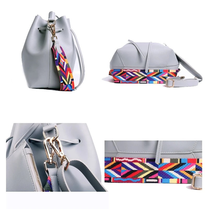 WOMEN BAG WITH COLORFUL STRAP BUCKET BAG WOMEN PU LEATHER SHOULDER BAGS CROSSBODY MESSENGER BAGS